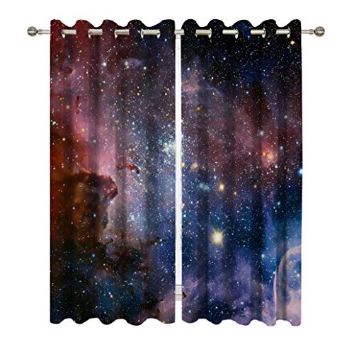 Consumer Reviews Blackout Window Curtains 2 Panels, Outer Space Stars Polyester Window Treatment Drapes for Living Room Bedroom Hotel, 52W x 84L